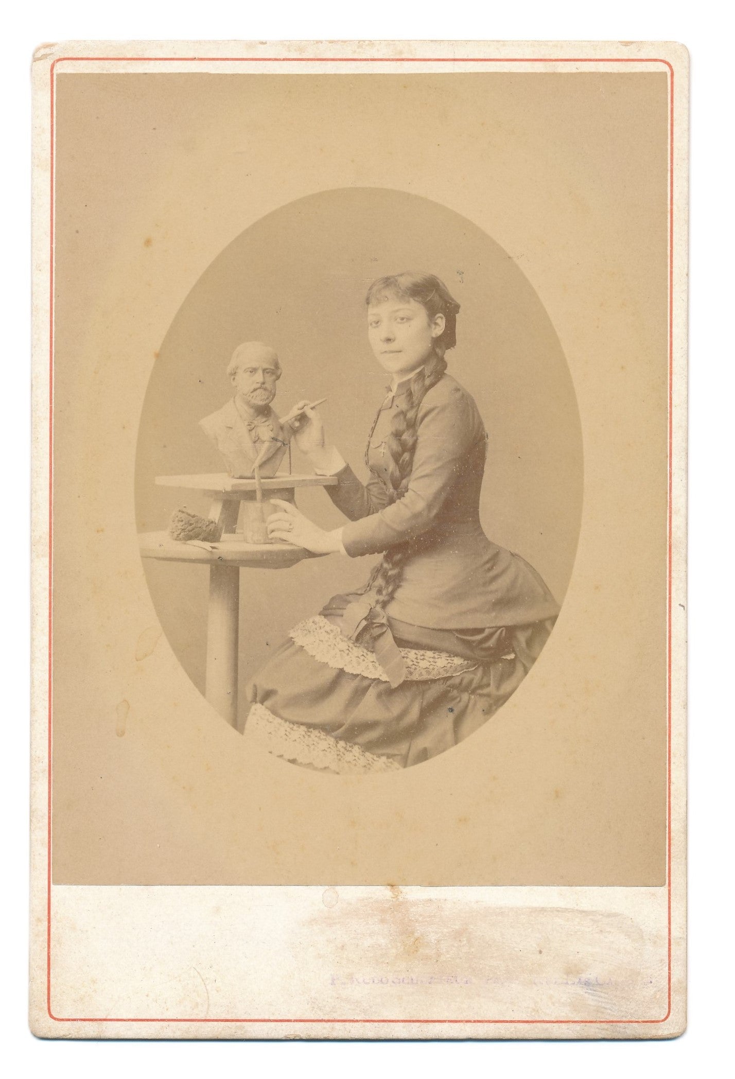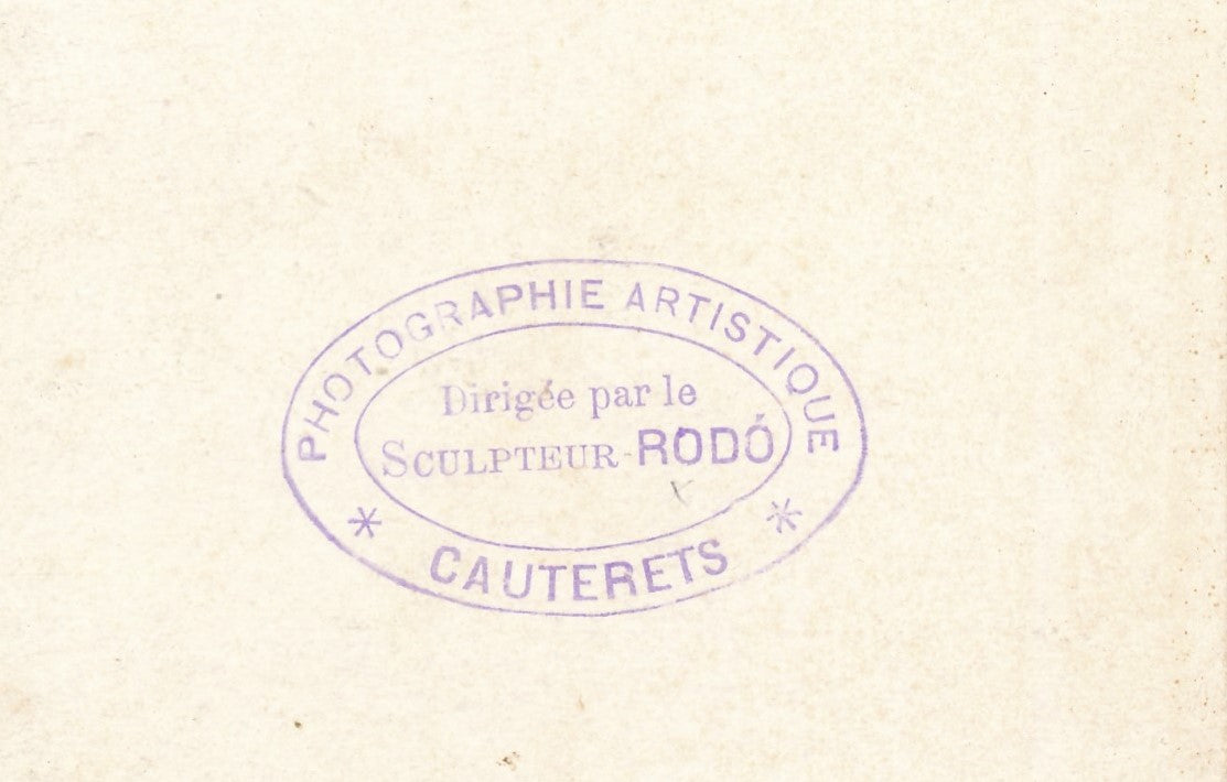 Tirage sur papier albuminé au format carte cabinet (16 x 10,5 cm). Cachet « Photographie artistique dirigée par le sculpteur Rodo / Cauterets ».
