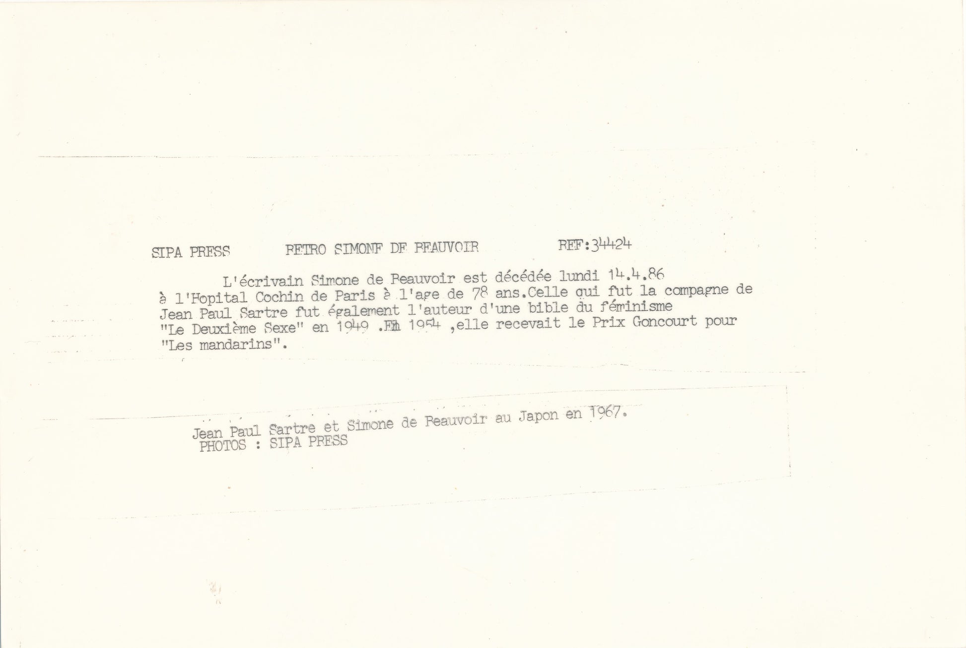 Simone de Beauvoir Jean-Paul Sartre au Japon en 1967 photographie posétérieure